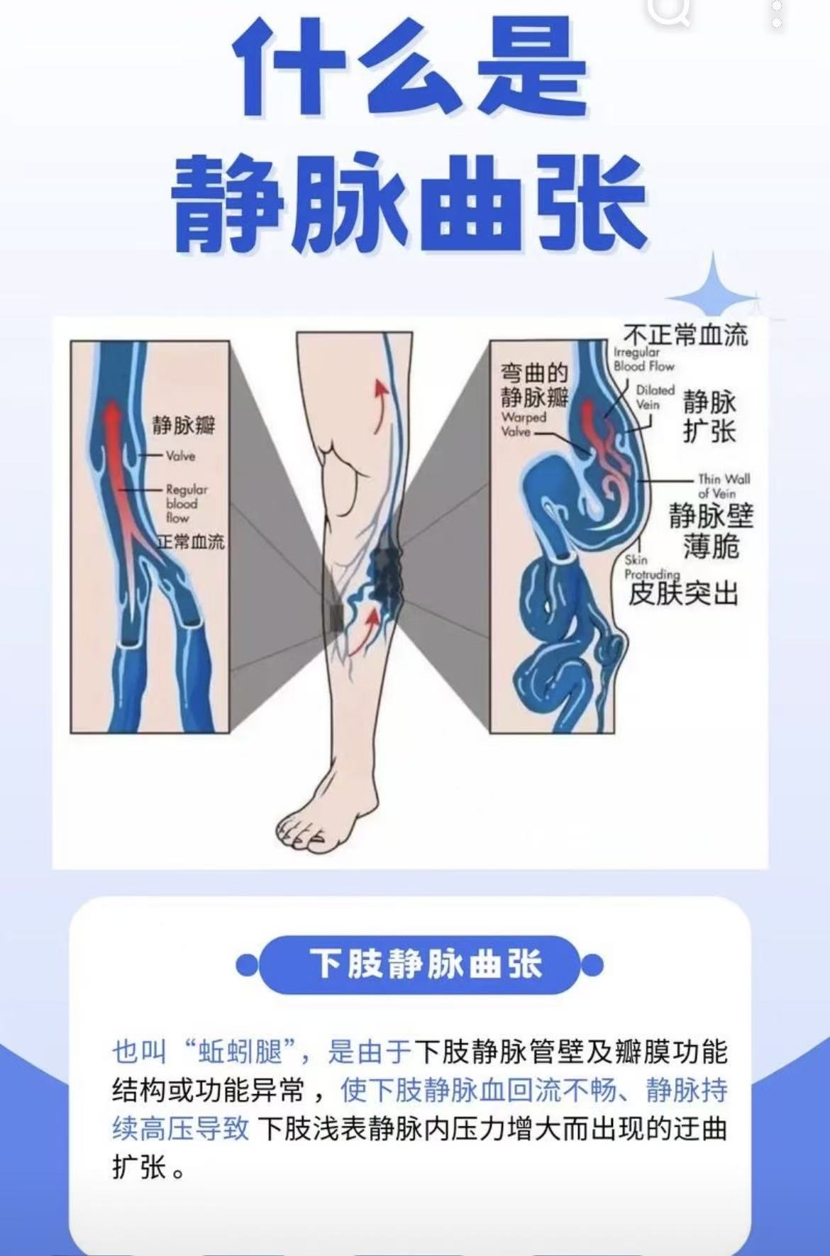 · 深静脉血栓(DVT): 虽然不常见,但严重的静脉曲张会增加深静脉血栓的风险。深静脉血栓一旦脱落,可能随血流到达肺部,引起肺栓塞,这是一种可能危及生命的急症。